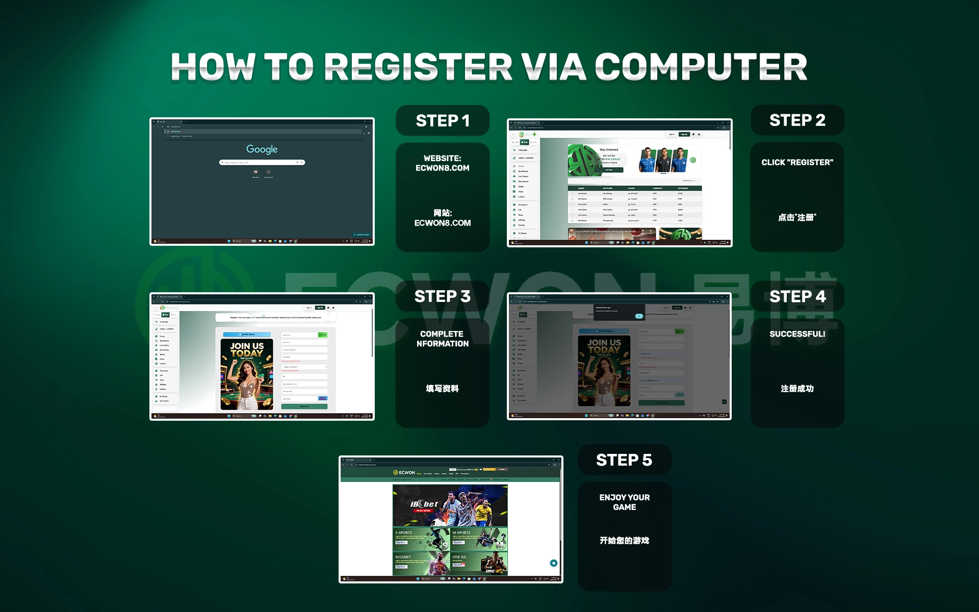 Please refer to the following steps for Register on PC :